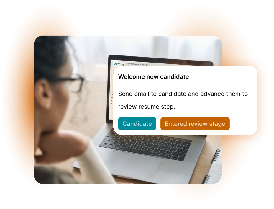 Kick off actions based on common events, like “candidate applied to job” or “candidate completed video screening.”